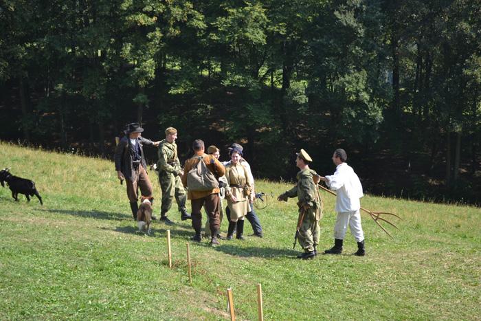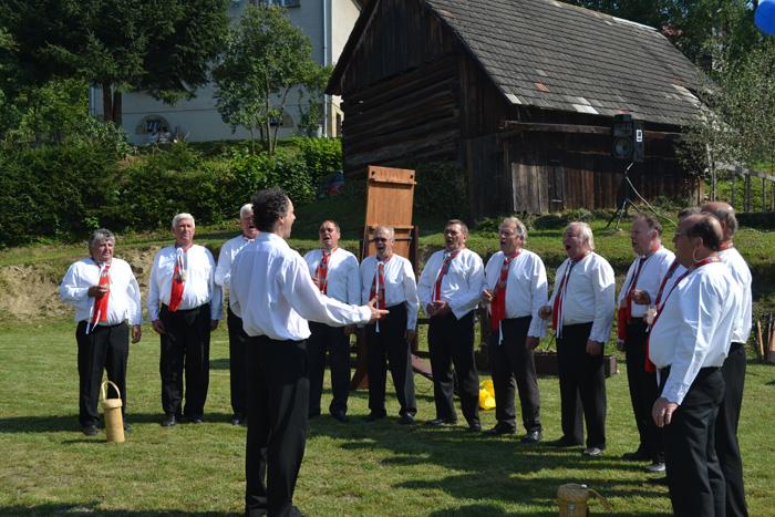 Starostové okolních obcí při zpěvu Valašské hymny